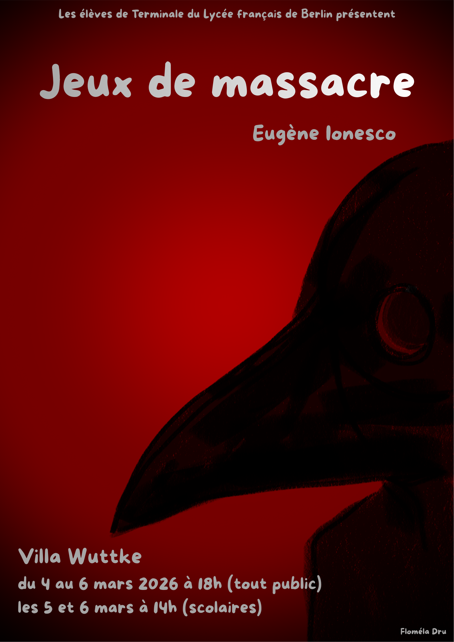 Das 1970 geschriebene Stück Jeux de massacre handelt von einer Stadt und ihren Einwohnern, die mit einer unbekannten Epidemie zu kämpfen haben, die verheerende Auswirkungen hat... Indem er das Verhalten der einzelnen Charaktere angesichts des Übels, das die Stadt dezimiert, zeigt, liefert uns Ionesco eine düstere und bissige Erzählung. Soziale Spannungen, Egoismus, menschliche Dummheit, Kleinlichkeit ... kommen zum Vorschein, während die Angst die Einwohner erfasst. Eine absurde Fabel, die uns auf beeindruckende Weise mit unseren Ängsten und Schwächen konfrontiert. Vorausschauend.