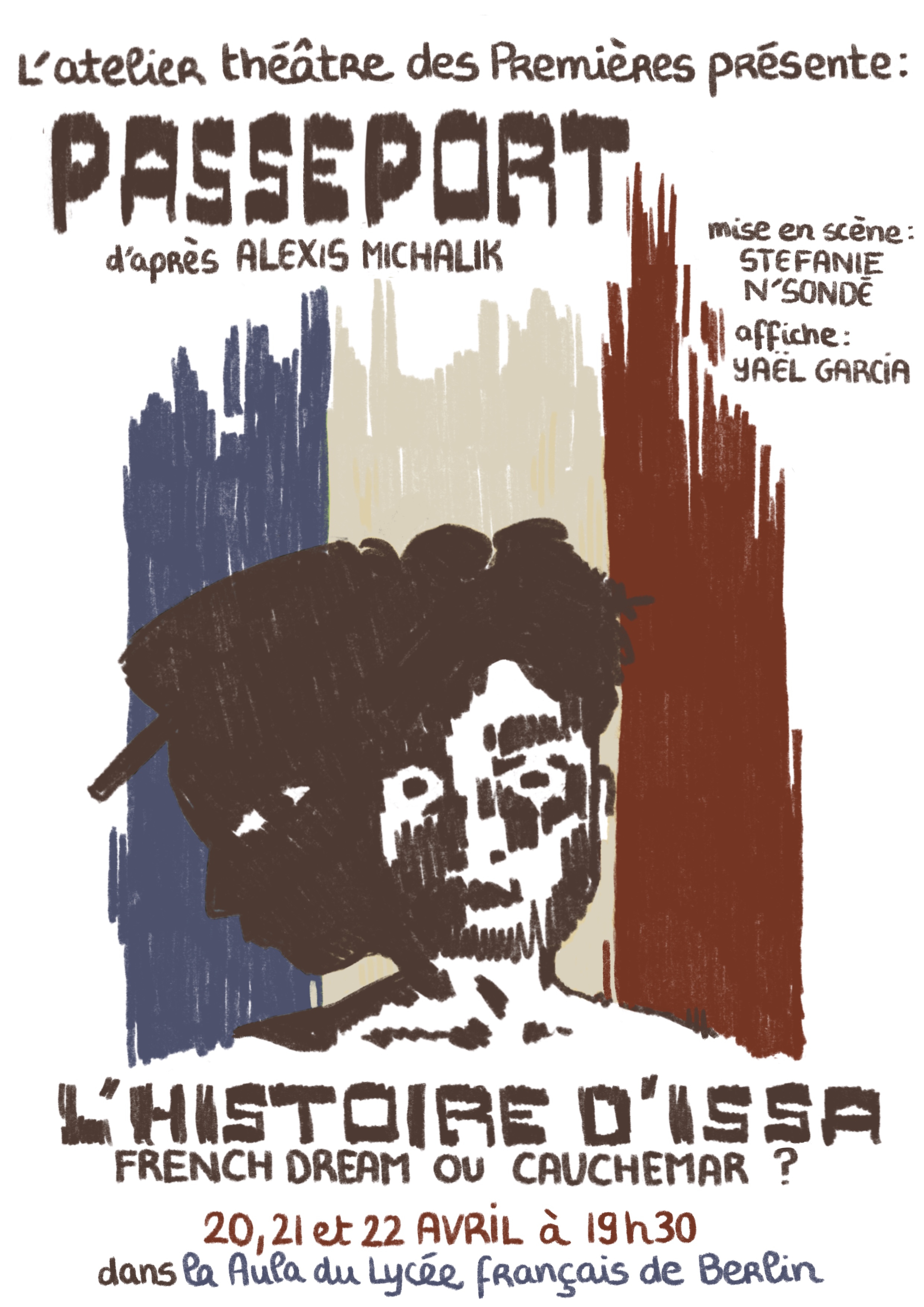 Attention, pour la pièce « Passeport » (20, 21 et 22 avril), les réservations se font sur Pronote ou par mail à snsonde@fg-berlin.eu.